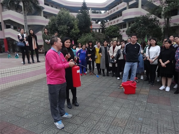 為進一步加強學校安全工作,營造安全、穩定、和諧的校園環境,增強東陽學校教職員工消防安全意識,了解消防安全知識,提高教職員工防火安全意識。2月27日晚上,在安全處謝平主任的組織下,由后勤處何文勇的講解,東陽學校開展了一次全校教職員工消防滅火器使用培訓及演練活動。全體教師、后勤生活老師、保安人員都參加了此次培訓活動。