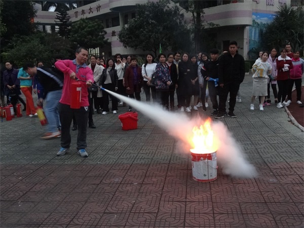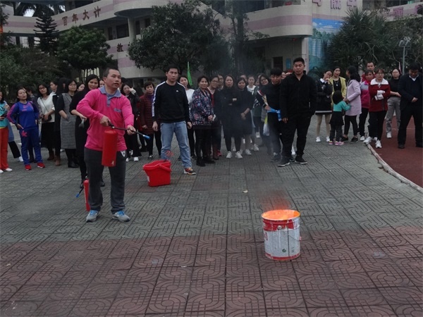 演練校委會結合實際情況,認真細致的制定了演練活動方案,明確職責要求。培訓首先由何主任強調防火的重要性及必要性,活動現場,并就干粉滅火器的正確使用方法進行了現場講解、示范、指導,強調使用滅火器要保持鎮靜,遇到火情千萬不要慌亂失措,牢記“一晃、二拉、三壓、四噴” 要領,掌握正確的使用方法,提高自救自護能力。隨后,在何文勇、何林、謝平主任的協助下,在場教職工紛紛上陣體驗滅火器的使用操作方法,現場進行了滅火演練。