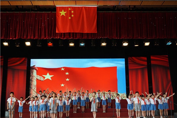 隨后,現場全體人員面向國旗,高舉右拳,在洪智躍老師的帶領下高呼:“祖國萬歲”,口號聲響徹館場,抒發了廣源學校師生對黨和祖國無比熱愛的豪邁情懷。學校小杜鵑合唱團和四(5)班的同學以歌聲與朗誦為祖國母親的生日獻禮,豪情滿懷的聲音,如海、如潮,使人精神振奮、思潮澎湃。