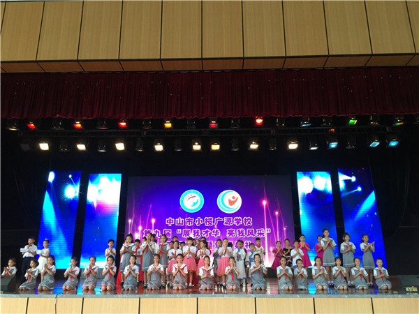 小溪匯成江河,群星照亮天空!體育館內熱鬧非凡!首先進行的是廣源學校第九屆“展我才華 亮我風采”節目展演暨頒獎典禮。廣源融匯,陽光成長!每一個小朋友都有一個夢,有一個舞臺夢!開場節目愛國歌曲聯唱拉開了活動的序幕。泱泱中華,禮儀之邦,民族舞串燒《情系中華》祝愿祖國的明天更加美好;一個有趣的故事,《三只小豬》帶給你們感受不一樣的精彩,逗得大家哈哈大笑;單口相聲《哲學》,讓觀眾喜聞樂見笑開懷;民樂合奏《瀏陽河》讓孩子們領略了民樂藝術的獨特風采;《木蘭辭》的朗誦,讓孩子們懂得了巾幗不讓須眉,弘揚了愛國、孝道、忠勇等中華民族的傳統美德;《拉丁風情》帶著大家走進拉丁世界,觀眾注目欣賞著小姑娘們的精彩演繹;相聲《敗家子》,幽默的語言、夸張的表情把大家帶進開心世界;琴韻悠悠,聲聲呼喚,韻律之美,讓觀眾們深受感染;《生長吧》,唱出了每個孩子心中的夢想。體育館內掌聲如潮,一浪勝似一浪。廣源學校“展我才華,亮我風采”的舞臺,是每一個心中有夢想的廣源學子的舞臺!
