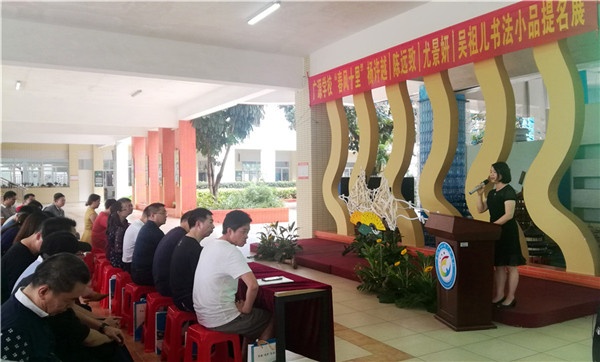 開幕式盛況空前,中山市書法名家齊集一堂,分別是廣東省欖菊集團總裁駱建華先生,中國書法家協(xié)會會員、廣東省書協(xié)理事、中山市書法協(xié)會主席、欖菊書法院院長駱培華先生,中國書法家協(xié)會會員、中山市書法家協(xié)會副主席、三鄉(xiāng)書社社長單永輝先生,中國書法家協(xié)會會員、中山市書法家協(xié)會副主席龍錦營先生,中國書法家協(xié)會會員、中山市書法家協(xié)會副秘書長、東鳳鎮(zhèn)書法家協(xié)會會長李軍先生,小欖鎮(zhèn)書協(xié)、印社的骨干代表謝啟斌、黃真武、曾國榮、羅樹焜、羅葉茂老師,小欖鎮(zhèn)教師書法中心組代表范小若、陸琨、周獻藝、倪金蓮老師;此外,中山市教育教學研究室林曉潔女士,小欖鎮(zhèn)政府老領(lǐng)導蔡建明女士,小欖廣源學校家委會名譽主席連如虹女士也到會祝賀。