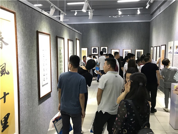 開幕式后,與會嘉賓步入展廳興致盎然地欣賞書法作品,大家驚嘆于作品內(nèi)容之豐、創(chuàng)作形式之雅、書法藝術(shù)之精、展覽創(chuàng)意之特。四位小作者也熱情向大家介紹作品內(nèi)容與創(chuàng)作過程,虛心向書法名家請教。各位書法大咖也熱情洋溢、不吝賜教,現(xiàn)場洋溢著濃濃的學習氛圍。