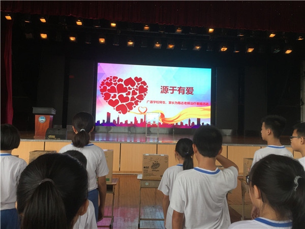 ——廣源學校師生、家長為陳志老師治療募捐活動發布時間:2019-06-06 16:25 信息來源:本網站 瀏覽次數:17