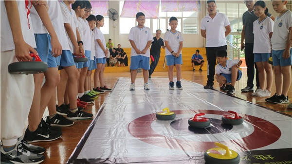 優(yōu)雅和激情并舉的冰壺運動,最早起源于14世紀(jì)的英格蘭的古老運動,“地冰壺”運動則是把“冰壺”運動的體育運動,進一步把它發(fā)揚光大。5月21日下午,香港成長教育協(xié)會導(dǎo)師來廣源學(xué)校為孩子們講授一節(jié)別樣的體育課——地冰壺運動。小欖鎮(zhèn)統(tǒng)僑辦主任、僑聯(lián)副主席鄭紫云女士,廣源學(xué)校校長韋銀好女士及兄弟學(xué)校的老師們到現(xiàn)場觀摩。
