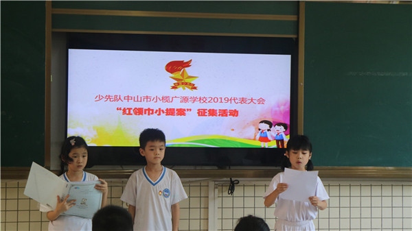 為迎接即將召開的少先隊中山市小欖廣源學校2019代表大會,動員廣大少先隊員從小關愛成長、關心學校、關注社會,培養少先隊員的自主、民主意識,增強隊員的自主性,給他們提供一個自我管理的平臺,激發其的主人翁意識,5月17日下午,廣源學校開展了少先隊中山市小欖廣源學校2019代表大會——“紅領巾小提案”征集活動。