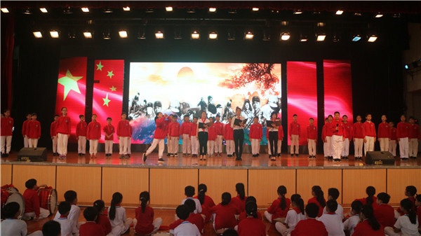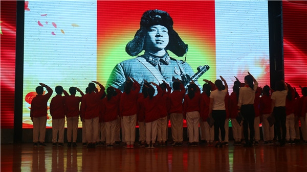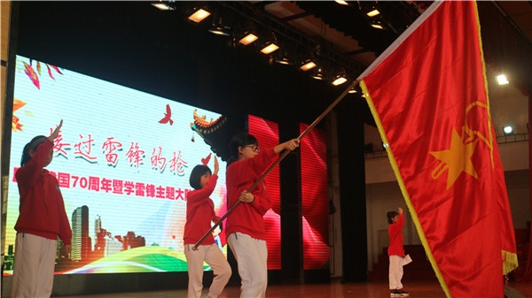 隨后,熟悉的旋律,激昂的歌聲,歌伴舞《我和我的祖國》、小組唱《學習雷鋒好榜樣》的歌聲回蕩在校園的每個角落,鮮艷的紅領巾在少先隊員胸前飄揚。