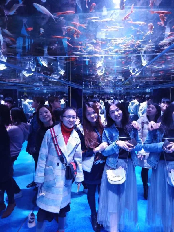 活動(dòng)四:海洋樂園開眼界。吃飽喝足后,女神們接著上到三樓的“6K帆鯊海洋樂園”賞魚。一進(jìn)門,人們就被一條條活潑可愛、美麗漂亮的魚兒所吸引。越往里走,驚奇聲、贊嘆聲更加不斷。在這祥和的藍(lán)色的海洋中,人們紛紛留影留念。