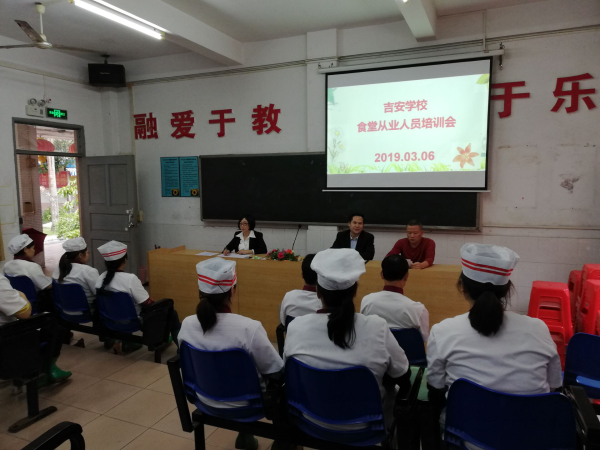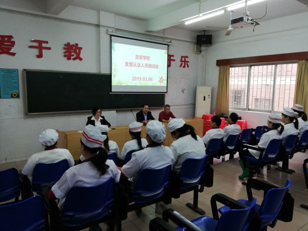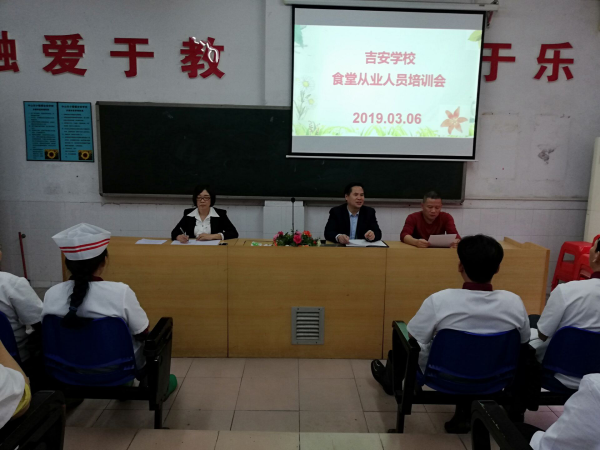 為使吉安學(xué)校食堂管理操作工作科學(xué)化,消除可能存在的學(xué)校食品安全隱患,給廣大師生營造良好的就餐環(huán)境,吃放心飯,吃健康飯,開心工作,開心學(xué)習(xí)。2019年3月6日,吉安學(xué)校組織學(xué)校食堂從業(yè)人員進(jìn)行了食品安全專項培訓(xùn)。本次會議由后勤魏勤英主任主持召開,所有食堂從業(yè)人員參與。