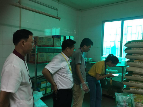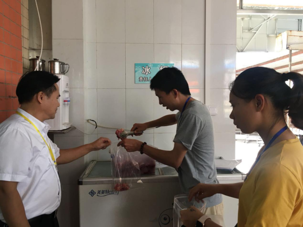2018年10月8日中午,中山市食品藥品監督管理局委托工作人員劉求等一行三人來到小欖吉安學校對食堂食品進行抽樣檢查。該校校長韋志海、后勤處羅錦信、魏勤英兩位主任接待了檢查組并陪同檢查。