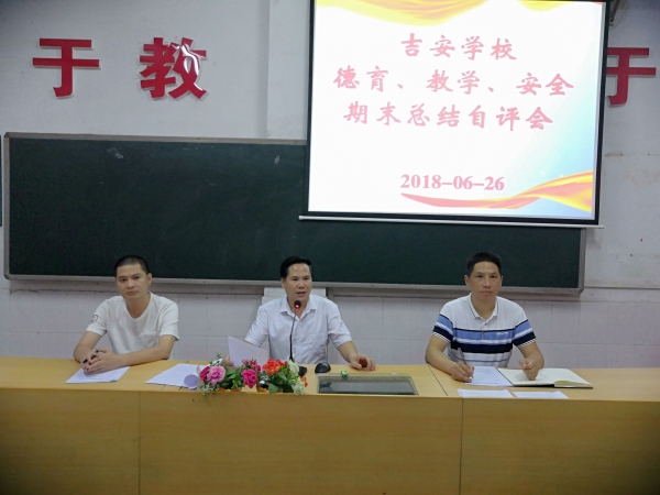 ——吉安學校德育、教學、安全期末總結自評會發布時間:2018-06-27 17:10 信息來源:本網站 瀏覽次數:66
