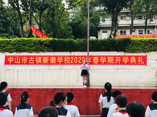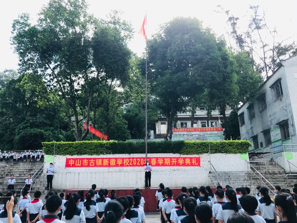 在度過了2020年特殊的“寒假”之后,全校師生已平安順利返校復學,6月5日上午8時,古鎮新徽學校全體師生一千余人間隔1米齊聚操場,舉行了2020年春學期開學典禮。
