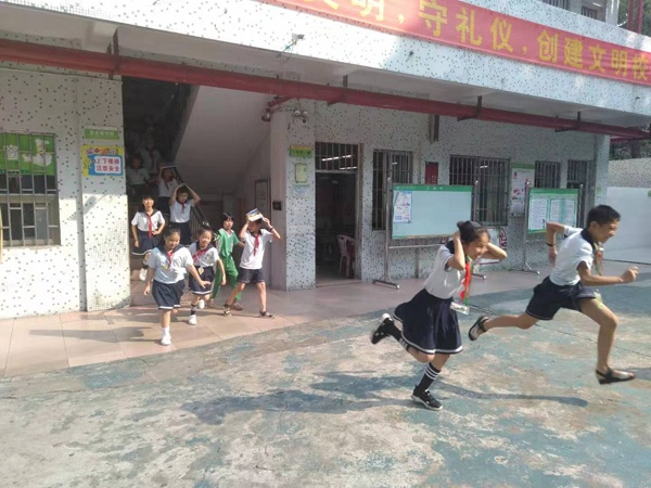 一陣急促的警報聲拉開了“防震逃生疏散演練”活動的帷幕,聽到警報聲后,各位老師立即到達指定崗位,指導學生快速按順序疏散,各班級在班主任的帶領下,有序撤離到學校操場的安全地帶,做到不互相擁擠、避免跌倒;疏散中用手抱頭防護、以防被砸;要迅速有序前進,不要爭先恐后的慌亂奔跑;到達集中地后要蹲下抱頭、保護頭部、原地等待。同時,學校領導還教育學生,地震發生時應該做到靠墻角邊逃生,要用手抱住自己的后腦,以防頭部受到傷害。