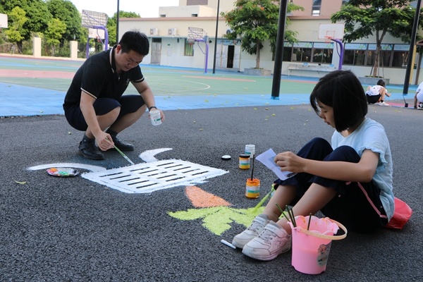 “為了今天這場活動,我們美術科組的老師前期做了大量的準備工作,統計全校所有的窨井蓋的個數及地點,選出可以使用的井蓋數量并做好編碼及分配工作,提前讓孩子們熟悉需要畫的井蓋位置,聯系家長、購買工具等。”學校美術科組長陳穎老師介紹,“我們還要通知學生家長具體參賽時間以及要求,認真做好繪畫活動當天的秩序及安全工作安排,做好指引與材料分發工作。”