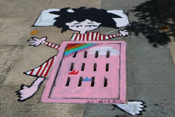 當天上午,共有40組家庭參與活動中來。在活動現場,孩子們或蹲或坐,在爸爸媽媽的陪伴下,將各式各樣的井蓋變成美麗的畫卷,展示自己不凡的創意。孩子們的涂鴉圖案不拘一格,種類繁多、明艷鮮活,一幅幅色彩斑斕、妙趣橫生的美麗圖畫,給全校的40余個井蓋賦予了新的生命,為校園美化做了一份貢獻,更為校園增添了生機與活力。