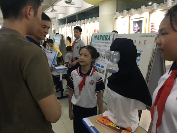 此次科技節根據學生的年齡特點和科技水平,設立了綜合實踐、科技成果、科技繪畫等項目參評。活動現場,同學們各展風采,制作了一件件別具匠心,能切實解決生活問題的科技作品。煙洲小學的科技創新成果有“一體式防護頭罩”、“智能頭盔”、“多功能洗腳器”、“自動寵物喂養器”、“太陽能風力顯示屏”等等。一些不起眼的小物件,經過同學們的精巧構思和加工創作,制作出了令人贊嘆不已的科技作品;綜合實踐活動有“鏗鏘醉龍 創意手作”、“非遺傳承,醉龍騰飛”等項目,也充分體現了煙洲特色,獲得評委的一致好評。