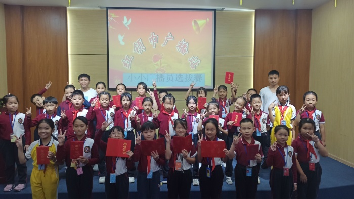 復賽階段,分為好文朗誦和講故事兩個環節,選手們自然豐富的表情、清脆悅耳的聲音,贏得評委們的一致好評。 從比賽中能感受到選手們對播音的熱愛,雖然還很稚嫩,但是他們卻盡全力展現著自己。通過精彩的較量,最終選出了15名播音員,成為了聚星紅領巾廣播站的一名小廣播員。何主任以及鐘老師為他們現場頒發聘書。