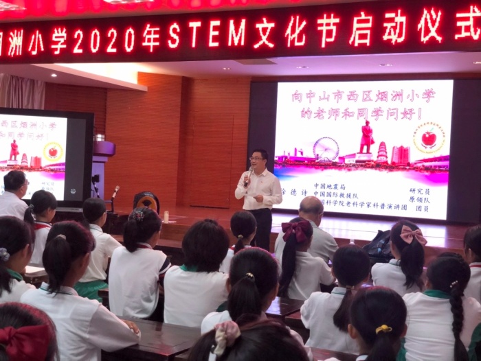 為了貫徹國務(wù)院《全民科學(xué)素質(zhì)行動計劃綱要》精神,全面實施素質(zhì)教育,提高學(xué)生的科技素質(zhì)和科學(xué)創(chuàng)新精神,借中山詹園科普教育基地舉辦中國科學(xué)院老科學(xué)家科普演講團(tuán)進(jìn)校園活動的契機(jī),2020年10月21日下午,煙洲小學(xué)在一樓多功能室開展了2020—2021學(xué)年科技節(jié)啟動儀式暨“中國科學(xué)院老科學(xué)家科普演講團(tuán)進(jìn)校園”活動。五、六年級參加現(xiàn)場活動,其余年級采用線上直播方式觀看。