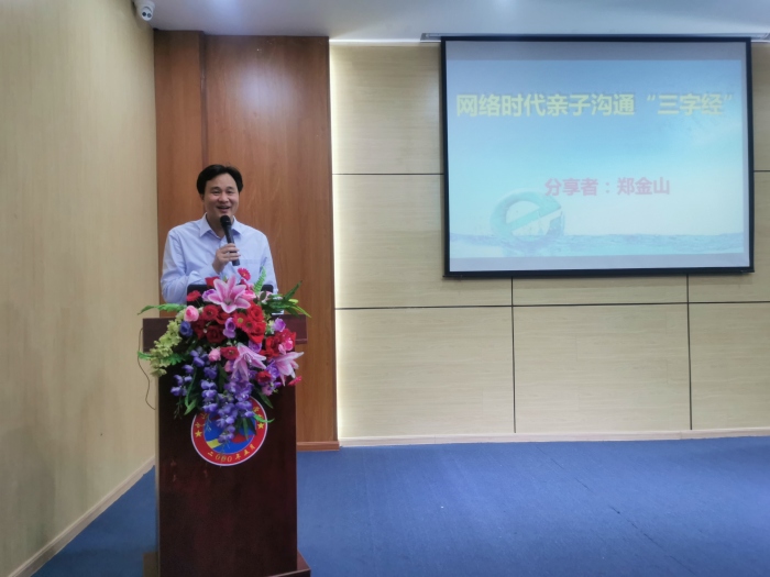 此次家長會邀請中山市家庭教育專家鄭金山老師開展一場以“網(wǎng)絡(luò)時代親子溝通三字經(jīng)”為主題的家庭教育。鄭老師心理健康基石:價值感、歸屬感,給家長答疑解惑,正確引導(dǎo)學(xué)生健康上網(wǎng)、尊重接納孩子的不足和差異,給孩子傳遞來自家庭的愛與溫暖,讓孩子身心健康成長。鄭老師用生活化的例子,以其幽默的語言娓娓道來,深入淺出道出了家庭教育的真諦,讓家長真切感受到與孩子溝通的重要性。