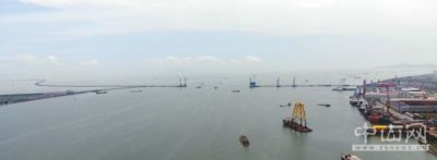2020年5月1日拍攝的正在建設中的深中通道。據悉,深中通道是集“橋、島、隧、水下互通”于一體的世界級工程。該項目沉管隧道長約6.8公里,共由32節沉管管節和1個最終接頭組成,是世界首例雙向八車道鋼殼混凝土沉管隧道。深中通道建成后,中山市民可30分鐘到達深圳寶安國際機場,這條交通大動脈將是促進深圳、中山兩地一體化發展的重要紐帶,計劃2024年全線通車。本報記者 黎旭升 攝