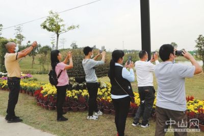 11月23日,小欖菊花會期間,游客在菊花園內游玩。遇見美景,大家同時拿出手機拍照。本報記者 王云 攝