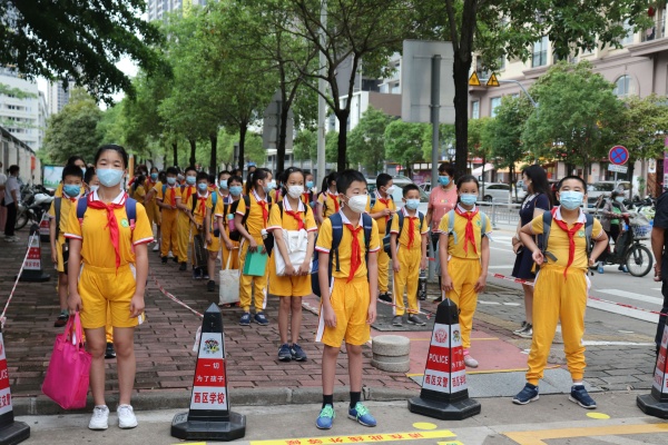該校當天早上用實際“笑臉”迎接學子返校。“你笑起來真好看”:“你笑起來真好看,像春天的花兒一樣”,一大早,西區中心小學的校園里傳來了美妙的歌聲。近千名學子踩著歡快的韻律歸來。輕松愉快的氛圍讓孩子們返校的心情愈發迫切。學校電子屏幕滾動播放:歡迎孩子們回校,你笑起來真好看!數百名教師胸戴笑臉徽章,迎接學子歸來。