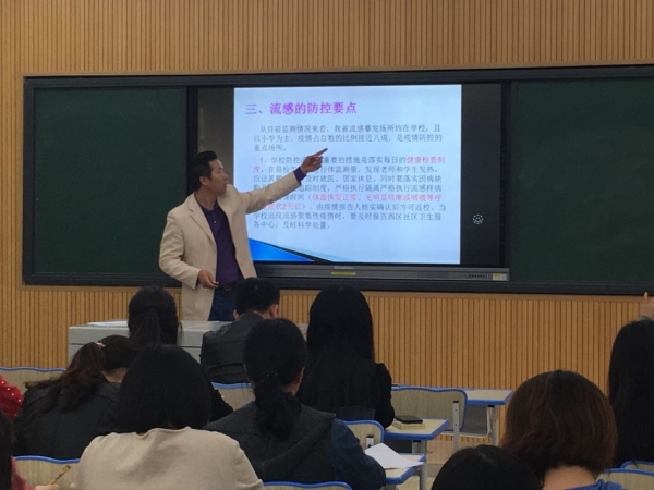 每年的冬春季節都是流感的高發季,為了保障師生的健康,預防流感的發生。為了統一認識,上午召開行政會議,學習上級有關流感防控的文件精神,鄭義富校長對學校近期傳染病防控作了總體要求:嚴防死守,狠抓落實,把師生的衛生安全放在學校工作的首位,營造一個衛生健康的工作、學習環境。