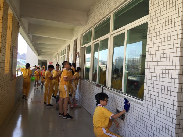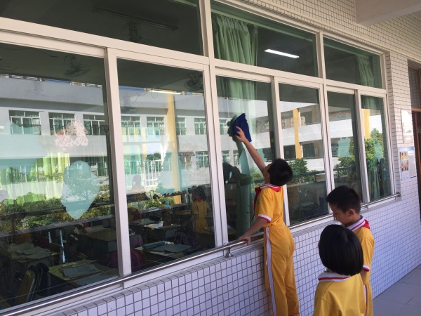大掃除活動安排在上午第二節(jié)進行。活動前韓保明主任首先向全體師生發(fā)起倡議。他號召大家以愛護校園環(huán)境為己任,自覺維護校園的清潔衛(wèi)生。不隨意亂扔果皮紙屑,不隨地吐痰;遵守公德,倡導(dǎo)文明,維護公共秩序,愛護公共衛(wèi)生。從現(xiàn)在做起,樹立愛護校園環(huán)境的意識,爭做校園環(huán)境保護“綠色衛(wèi)士”。與此同時,各班班主任也對學(xué)生進行了安全教育,對存在的安全隱患進行排察,確保整個打掃過程順利進行。接著大家根據(jù)學(xué)校安排,結(jié)合實際情況,分頭進行清潔活動。班主任與跟班老師協(xié)作,把學(xué)生分成2組,分別負責(zé)教室與公共區(qū)的清潔,班主任與跟班老師全程在場督促,對班級學(xué)生進行現(xiàn)場指揮。對包干地段、公共場室進行了一次徹底的大清潔。大掃除中同學(xué)們在老師的帶領(lǐng)下,除蛛網(wǎng)、擦窗戶、抹臺凳、拔雜草、拾垃圾、拖地板……整個校園呈現(xiàn)出熱火朝天的勞動場面。在老師的照看下同學(xué)們有組織有紀(jì)律地開展勞動,每個角落都能看到同學(xué)們一絲不茍,認真干活的樣子。低年級同學(xué)干不了的活,高年級的同學(xué)爭著干;危險的活,老師干;太重太累的活,男同學(xué)搶著干;熱火朝天、互幫互助的勞動場面讓人感動不已!一節(jié)課下來,整個校園煥然一新。呼吸著新鮮空氣,看著潔亮的環(huán)境,同學(xué)們?yōu)樽约旱膭趧映晒械叫牢浚?/p>