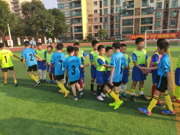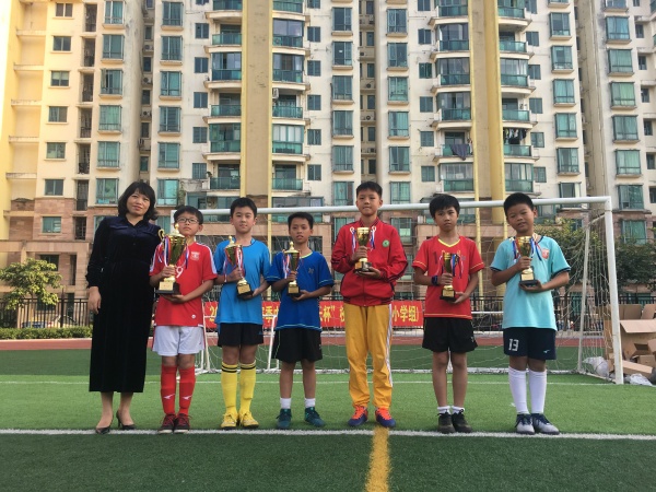 在這次足球比賽備戰中,隊員們從開學初開始,每周上學上午和下午時間積極訓練,認真備戰,頑強拼搏。比賽中積極迎戰每一個對手,文明比賽。在10月23日,小組賽首戰以4:2力克聚星小學足球隊,獲得開門紅。11月5日,對陣勁旅藍波灣小學足球隊,以0:5敗北。小組賽最后兩場分別戰勝翠景東方代表隊和鐵城小學代表隊,最終以小組第二名出線,進入四分之一決賽,對陣B組第一名西區中心小學足球隊。11月20日,在對陣西區中心小學隊時,隊員們頂住半決賽的壓力,放松心態,奮勇爭先,可惜在比賽剛開始兩分鐘,隊員陣腳未穩,被對手突然襲擊,以0比2落后。比分落后并沒有影響隊員的士氣,在教練吶喊下,隊員們如箭一般向球沖去,上半場就連扳兩球,上半場扳平比分,在下半場苦戰中,隊員又連進三球,最終以5:3戰勝強大的對手。