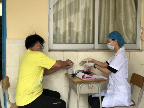 演練按計(jì)劃時(shí)間正式開(kāi)始。校外值日教師演練維持校門(mén)口秩序,確保家長(zhǎng)不得進(jìn)入校區(qū),保障學(xué)生秩序和安全。校內(nèi)值日教師引導(dǎo)進(jìn)入學(xué)校的學(xué)生根據(jù)地上的腳印有序排隊(duì),前后間隔一米,入校門(mén)時(shí)進(jìn)行體溫檢測(cè)。演習(xí)中模擬發(fā)現(xiàn)體溫超過(guò)37.3°的同學(xué),值日教師引導(dǎo)該同學(xué)到臨時(shí)篩查點(diǎn),由醫(yī)生進(jìn)行體溫的再次測(cè)量并進(jìn)行詢問(wèn)有無(wú)流行病學(xué)史等情況,并根據(jù)具體情況做出及時(shí)處理。上課演練過(guò)程中,由老師扮演的學(xué)生模擬出現(xiàn)了體溫異常、嘔吐等現(xiàn)象,由上課的老師、校醫(yī)做出正確的應(yīng)急處理。