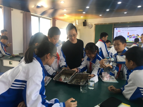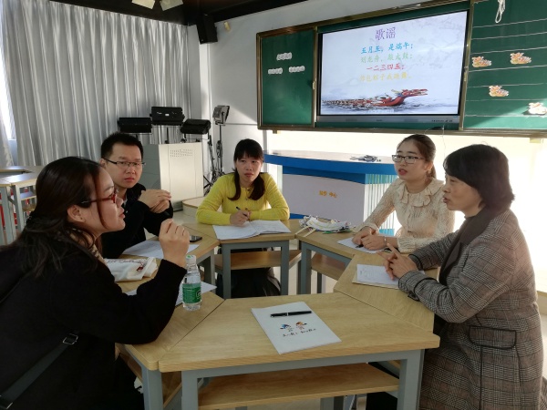 接著,為了讓綜合科組的教師更直觀地感受學校教育信息化應用的成效,鹽步中心小學專門開放了各類學科的精彩課堂,讓教師進行觀摩,科組教師根據任教科目自主選擇觀摩的課程。綜合科三位老師聆聽了一節以《“鹽步老龍”校本教材》為主題的綜合實踐課。授課老師注重激發二年級的孩子對傳統文化的深愛,以看(龍頭、龍身)、講(故事)、聽(老龍曲)、做(拼圖)、賽(龍船)等形式,讓孩子們對“鹽步老龍”有了初步的了解,同時注重對“老龍”精神的深化,這使本土文化有了很好的闡釋,也為煙洲小學綜合科開展“長洲醉龍”的校本課程提供了參考。執教《探索土地被侵蝕的因素》的科學老師,通過課前讓學生完成實驗研究計劃,確定實驗探究題目、提出合理的實驗猜測、制定實驗方法等,讓學生的科學思維得到了很好的鍛煉;在小組進行實驗結果匯報時,其他小組的質疑及師生的及時歸納總結,不僅完善了學生的實驗設計方案,還培養了學生善于質疑的科學探究精神。激情的課堂、投入的師生、精彩的講授使得教師備受啟發。而體育課《立定跳遠》,整體設計都是從學生的年齡特征出發,李老師很好地把握住課堂常規,巧設情境導入,激發學生的興趣,課堂上老師循循善誘,安排了許多競賽,靈活多樣的跳法練習,為學生創設公平競爭的氣氛,留給學生一定的活動天地,并讓學生在觀察思考中得到啟示和鍛煉,真正調動了學生的積極性,提高了學生的競爭意識。音樂科的青年教師潘婉華帶來了一節聽賞課《跳圓舞曲的小貓》。潘老師教態親切,教學步驟清晰,教學方法豐富多樣,良好地達成了本節課的教學目標。課后,兩校音樂教師進行了評課交流活動,青年教師思維活躍,提出了不少頗具新意的教學設想;中年骨干教師經驗豐富,為幫扶青年教師快速成長起到了引領的作用。