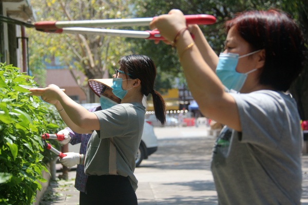 會(huì)后,黨支部成立了三支創(chuàng)文突擊隊(duì)小分組。第一小組負(fù)責(zé)學(xué)校衛(wèi)生清理。大家興沖沖拿起掃把,清理學(xué)校的每一個(gè)角落,特別是學(xué)校“死角”區(qū)域,為學(xué)生返校創(chuàng)建整潔的校園環(huán)境。第二小組負(fù)責(zé)“牛皮癬”清除。校園代表著一個(gè)學(xué)校的精神面貌,“校園牛皮癬”不能留。看,大家正在努力地鏟除“牛皮癬”呢! 第三小組負(fù)責(zé)校園的美化綠化工作。話不多說,同志們趕緊拿上修枝剪,把花草修剪得更加整齊、美觀!