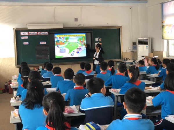 本次活動(dòng)中,吳景珊和吳曉霞兩位老師選取四年級(jí)第七單元 Working or Playing中的故事作為教學(xué)內(nèi)容,同課異構(gòu),給大家呈現(xiàn)了兩節(jié)精彩的故事課例。沙朗小學(xué)吳景珊老師備課充分、恰當(dāng)使用教材、教學(xué)目標(biāo)明確。在故事前通過游戲激發(fā)學(xué)生興趣,并將第二單元的舊知與本單元的新知有效地進(jìn)行融合,讓學(xué)生進(jìn)行踴躍思考,引出Working or Playing這個(gè)主題。故事中部分吳景珊老師通過設(shè)計(jì)連線、判斷和問答題,由淺入深地幫助學(xué)生理解故事內(nèi)容。此外,通過視頻跟讀,進(jìn)一步了解故事細(xì)節(jié),并在閱讀過程中吳景珊老師通過豐富的肢體語言和表情幫助學(xué)生理解難單詞及句型。故事后的學(xué)生小組角色扮演,學(xué)生聲音洪亮,表達(dá)流暢。小組表演完畢后,吳景珊老師給予了積極肯定的點(diǎn)評(píng),教學(xué)反饋及時(shí),學(xué)生積極性高。