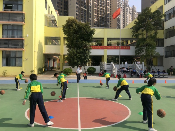 本次活動由西區廣豐小學郭逸昊老師和西區昌平小學覃福軍老師以“發展籃球控球能力”為教學目標進行了“小籃球行進間運球”為課題的同課異構教學觀摩交流活動。雖然兩位老師教齡不同,風格不同,但課堂都異彩紛呈,得到聽課老師們和學生們的一致好評。