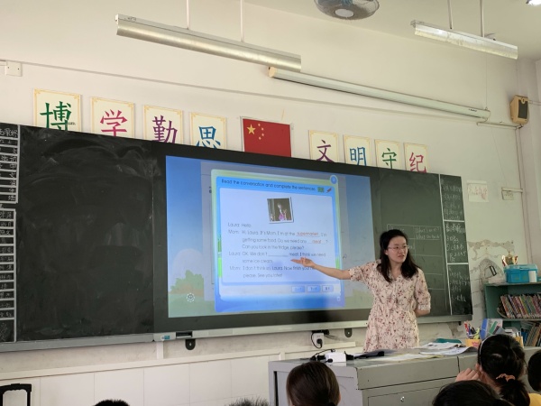 首先,由西區中心小學的蔡林豆老師執教一節五年級的閱讀課——Unit 6 Shopping,蔡老師教態自然大方,表情和藹,語氣可親,積極主動與學生互動,課堂氣氛活躍。