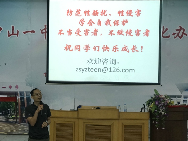 6月2日下午,中山一中西區(qū)中學(xué)在階梯室舉辦了“擁抱青春,防范性侵——初二級青春期性教育”講座,本次活動(dòng)由莫秀紅副校長主持,中山一中青春期性教育課題組賴浩老師主講,初二年級全體男生、全體班主任、生物科組參加本次活動(dòng)。