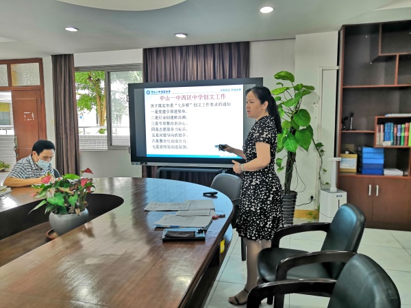 2020年5月15日上午,中山一中西區中學全體行政召開創文工作推進會議,莫秀紅副校長主持了會議。
