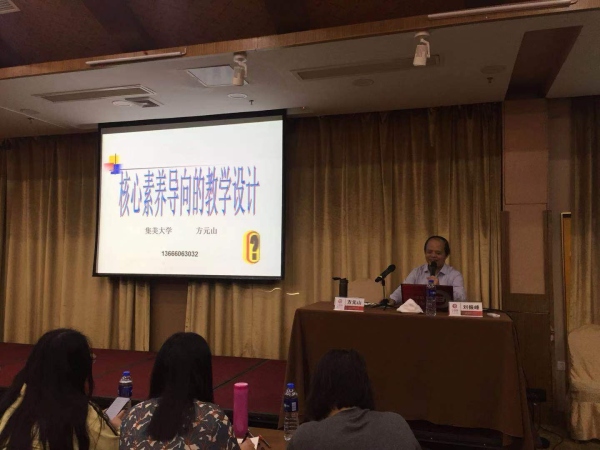 23日下午,研修班邀請到國家著名教育專家、福建省基礎教育課程改革實驗專家、廈門集美大學教育學院教授——方元山進行授課。方教授為學員們分享了“核心素養導向的教學設計”為主題的理論講座。本專題的主要內容分為核心素養的內涵、核心素養導向的教學理念、核心素養導向的教學設計三個部分。方教授勉勵學員們要建立核心素養導向的教學理念,他認為所有的教育都應該指向人,“使人視野開闊、興趣廣泛;使人產生對知識和真理的渴望,并且能夠形成一種嶄新的思維方法,最終成為一個文明的人,有教養的人,有健全人格的人”。方教授對“先學后教、以學定教、少教多學”教學設計的解讀和教學案例“孫悟空和白骨精的執著”的展示,得到了研修班學員老師的陣陣掌聲和喝彩。
