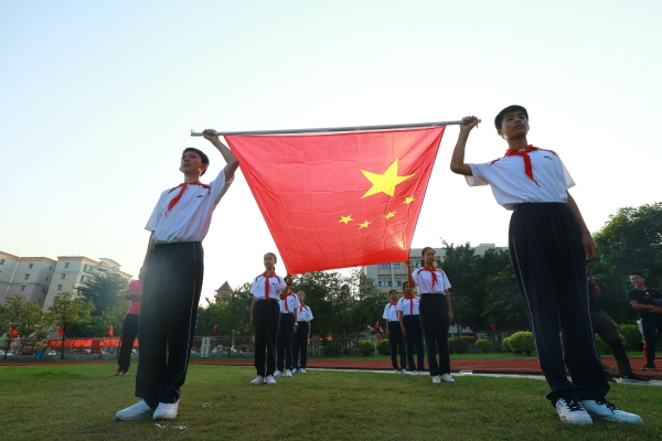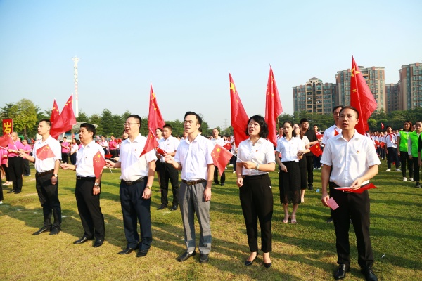 9月30日上午,區(qū)黨工委委員馮能興,區(qū)文體教育局陳水清局長、區(qū)教育事務(wù)指導(dǎo)中心主任吳開若、副主任劉海英,區(qū)教育事務(wù)指導(dǎo)中心德育專干、安全專干、宣傳專干及全區(qū)公民辦中小學(xué)德育副校長,中山一中全體師生及部分優(yōu)秀家長代表近2000人參加了活動。莫秀紅副校長主持了本次活動。