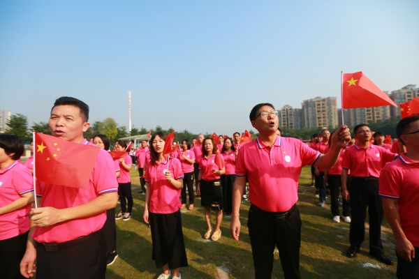 今年是中華人民共和國成立70周年。為生動展示新中國成立以來的輝煌成就,唱響禮贊新中國、奮進(jìn)新時代主旋律,中山一中西區(qū)中學(xué)作為西區(qū)教育系統(tǒng)主會場,精心準(zhǔn)備了本次活動,校園內(nèi)紅旗飄飄,師生著裝整潔,精神煥發(fā),黨員教師佩戴著黨徽,校園內(nèi)洋溢著濃厚的節(jié)日氛圍。