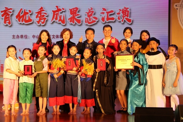 學校美育工作負責人劉敏輝介紹,為了參與今年這次美育節,學校精心組織了多種形式的文體活動,孩子們通過參加書法、繪畫、合唱、舞蹈等比賽各顯神通,展示自己的藝術才華。最終,師生多幅優秀作品參展,孩子們表演的朗誦及兩個舞蹈節目脫穎而出,成功拿到美育節綜合文藝匯演及頒獎演出資格,在閉幕式當晚進行了精彩的展示。舞蹈指導老師、藝術科組長賴麗玉老師表示,只要那天有比賽,老師們就要忙著準備道具、給小演員們化妝,還要帶孩子們彩排、吃飯、管理他們的紀律和安全。雖然很忙碌、很辛苦,但看到孩子們的變化和成長,自己心里感到由衷的高興。