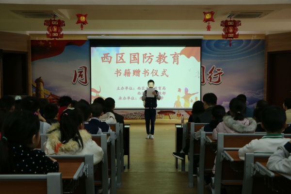 為提升西區中小學生國防意識,加大國防教育宣傳力度,12月5日下午,西區文體教育局聯合西區人民武裝部在西區鐵城小學報告廳舉行了國防教育書籍贈書儀式。西區黨工委委員陳飛國、武裝部王龍珠副部長、教育事務指導中心劉海英副主任、德育專干蘇文森、鐵城小學侯潔校長以及西區各校德育副校長(或德育主任)出席活動,鐵城小學約200名學生一同參與贈書儀式。
