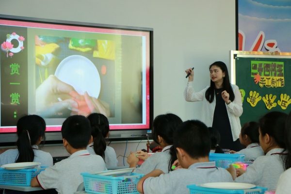 當天下午,學校青年教師林秀媚以《二十四節氣手工制作》為主要探究內容進行了課堂教學展示。林老師將二十四節氣與手工制作結合在一起開展教學。在她的課堂上,同學們躍躍欲試,借助輕粘土在純白的手工畫盤上盡情描繪他們對二十四節氣的感受與想象,將他們的童真與潛力無限的創新能力精彩地展示了出來。隨后,課題主持人周敏老師代表課題組對《新時期學校勞動教育發展研究——基于二十四節氣的勞動時間課程與資源研究》作開題報告。