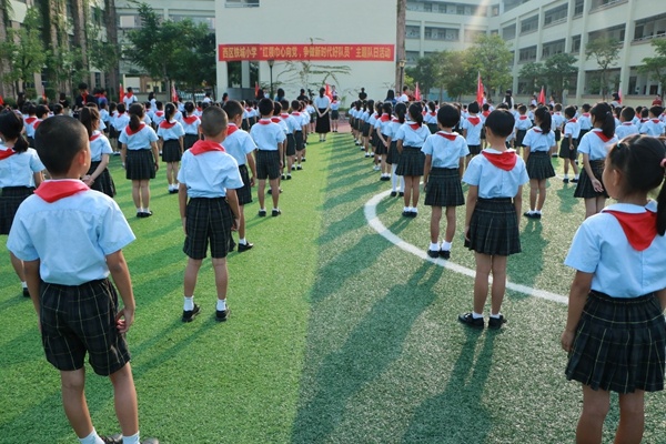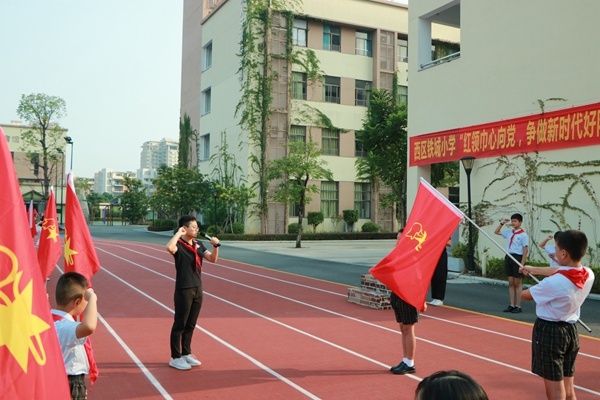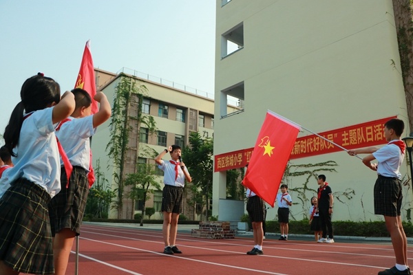 伴隨著祖國前進的步伐,中國少年先鋒隊走過了70年光輝歷程。在中國少年先鋒隊建隊日來臨之際,西區鐵城小學舉行了“紅領巾心向黨,爭做新時代好隊員”主題隊日活動。