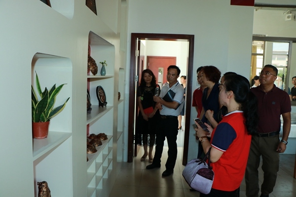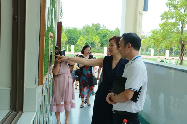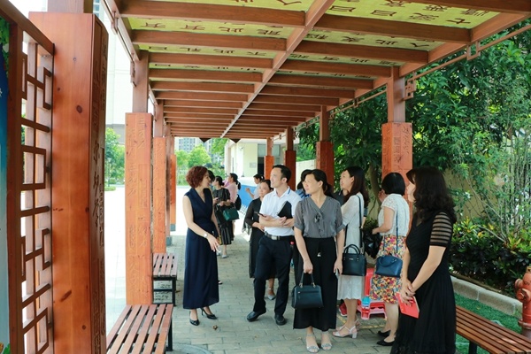會(huì)議結(jié)束后,與會(huì)嘉賓一行近150人來(lái)到鐵城小學(xué)參觀,該校侯潔校長(zhǎng)、張文君副校長(zhǎng)及全體行政參與接待。當(dāng)天,他們首先參觀了校園環(huán)境,在星空廊、厚德廊、鳳凰樹(shù)下的小舞臺(tái)、悅讀館等地駐足觀看。該校優(yōu)美的環(huán)境深深吸引了大家的注意力,他們紛紛駐足拍照留影。隨后,各位嘉賓還走進(jìn)了該校的書(shū)法室、美術(shù)室、手工室、音樂(lè)室、舞蹈室、合唱室、管弦樂(lè)室等實(shí)地參觀,深入體驗(yàn)和感受學(xué)校的辦學(xué)理念和課程特色。