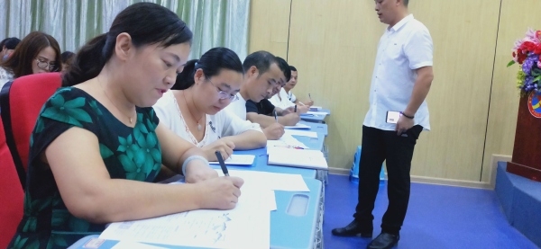 為提高教師的基本功,幫助教師掌握硬筆書法技能,切實提高教師們的書寫質量,10月11日晚上,聚星學校董事會特別邀請廣東省書法家協會會員、中山市中信左岸藍青國學館館主蕭藍青老師為聚星教師們進行教師基本功培訓活動。