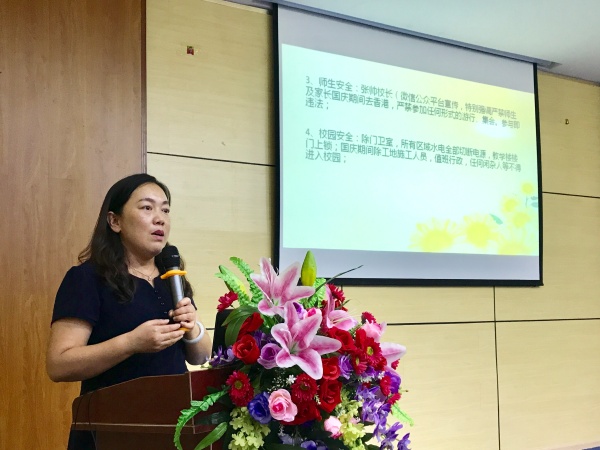 晚上聚星學校在階梯室召開國慶安全工作專題會議,路海云校長傳達了西區教育系統9月26日國慶假期校園安全工作部署緊急會議精神,強化教師安全意識,要求全體教師時刻緊繃安全之弦,做到思想上再重視,責任上再強化,行動上再落實。