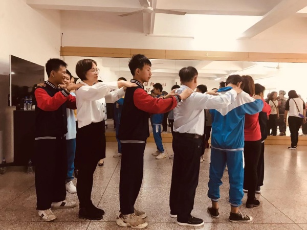 本次活動主要由心理工作坊的張瑛導師主持,梁琳老師、雷靜婷老師等十幾位工作坊的成員老師,以及廣浩學校中學部的30個家庭,共同參與活動的全程。整個活動共有四個環節:第一個環節是“飛天口香糖。”要求所有人聽口令做動作,本環節通過家長與孩子之間的擁抱、貼臉頰等肌膚之親,讓孩子感受到父母的愛,讓父母感受到孩子的所需,孩子的成長。第二個環節是“組建家庭。”把30個小家庭分成3個大家庭,每個家庭組建各自的組名、口號、隊形,并展示出來,本環節可以體現孩子們的學習能力、表現能力及創新能力。第三個環節是“冰山融化,登陸逃生。”每個大家庭先分發八張報紙作為登陸逃生工具,成功后減為六張報紙,最后再減為四張報紙,要求每個家庭成員同時站在報紙上才算成功。本環節可以培養孩子與孩子之間、孩子與家長之間的團結合作意識。第四個環節是“快樂放松操。”要求每個大家庭圍成圓圈,給自己前面的人按摩、捶背、揉肩等。本環節讓大家學會當受到他人恩惠的同時要懂得感恩回饋他人。大家都沉浸在游戲的歡樂當中,玩得不亦樂乎!最終漸漸地回歸生活中,大家心情平靜下來,惋惜相處時間的短暫,也多了幾分思考,父母與孩子之間的情感在這一刻得以全然釋放,這是孩子的釋懷,也是父母愛的表達。