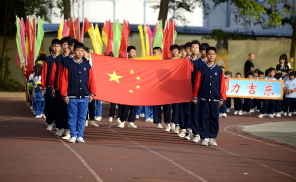 時維十一月,秋色迷人青春飛揚,為了豐富校園文化生活,以育人為宗旨,面向全體學生,激發學生對體育、藝術的興趣和愛好,培養學生健康的審美情趣和良好的文明素養,著力推進和加強校園精神文明建設,提升學校素質教育質量和辦學品味。廣浩學校于11月27日上午舉行以“活力吉東,激情廣浩”為主題的田徑運動會。參加本次運動會開幕式的領導有:西區文體教育局陳水清局長、吳開若主任、劉海英副主任,華南國際吉東教育集團李金東董事長、吉東教育集團李新海副總裁、廣浩學校黃飛躍校長以及全體師生,還有紛至沓來的家長們,可謂是氣勢磅礴,萬人空巷。