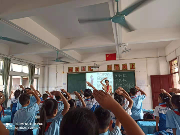 少先隊員們仔細聆聽輔導員們的教導,糾正自身還不規范的小細節,紛紛跟著輔導員系上最規范的紅領巾,敬最標準的隊禮,嚴格按照要求舉起右拳于耳側用最洪亮的聲音學著宣誓、呼號等。未入隊的小同學們帶著滿滿的好奇跟著老師認真學著少先隊基本知識,爭取早日戴上鮮艷的紅領巾入隊,成為一名真正的少先隊員。