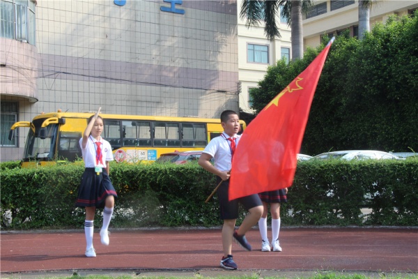 為增強少先隊員的使命感,大隊委周燁帶領全體少先隊員重溫入隊誓詞。大隊副總輔導員陳彥樺老師帶領全體少先隊員呼號。隨后黨支部書記周虹橋老師做了深情的寄語,激勵全體少先隊員要好好學習,樹立遠大志向,做新時代好隊員。最后由大隊總輔導員劉蓉老師對本次微儀式做了簡短的總結。